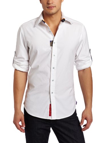 Perfect with your favorite denim on a casual day. Solid long sleeve washed cotton sport shirt with button tab at upper sleeve allows sleeves to be rolled up. Accented with contrast tape on front tab of inside neckband and cuffs